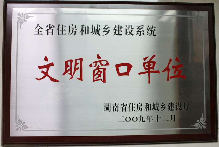 2009年12月被湖南省住房和城乡建设厅评为“全省住房和城乡建设系统文明窗口单位”