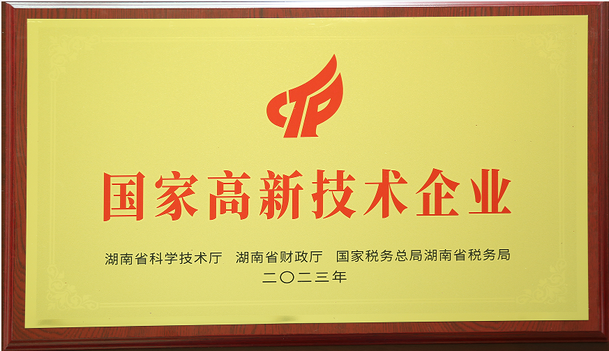 2023年12月被湖南省科学技术厅授予“国家高新技术企业”